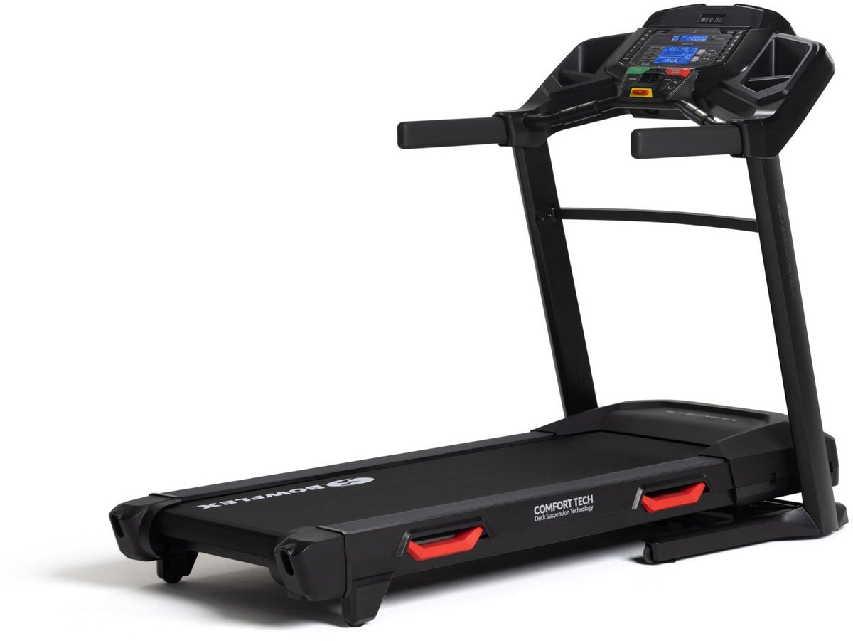 Comfortabele training met voldoende ruimte De BXT8Ji loopband is voorzien van een kristalhelder DualTrack LCD-display en wordt geleverd met 26 vooraf geïnstalleerde trainingsprogramma’s. De loopband heeft een gemotoriseerde hellingshoek van 15% voor bergtrainingen. Een zachtere landing wordt mogelijk gemaakt door een 51 cm breed en 152 cm lang loopdek en een ComfortTech dempingssysteem. Op de loopband bereik je snelheden tot wel 12 km/u. De loopband is contact- en telemetrie-geschikt voor hartslagmeting. Ook beschikt de loopband over draadloze connectiviteit voor slimme apparaten en hartslagmeting. Apparaten kunnen ook worden aangesloten via de USB-poort en de MP3-ingang. Bowflex BXTJi8 – De loopband voor interactieve training Bij de Bowflex Loopband BXT8Ji krijg je een gratis proeflidmaatschap van JRNY. JRNY is een fitness-app waarmee je de betekenis van personal training opnieuw kunt beleven. De app biedt je gepersonaliseerde trainingen, zoals cardio-, kracht- en total body workouts. Bovendien kun je jouw doelen bereiken via een virtuele trainer. Kijk je echter liever een serie of luister je muziek, dan biedt JRNY streams zoals Netflix en JRNY Radio aan, waar je gebruik van kunt maken tijdens je training. Bovendien reis je in je eigen tempo door meer dan 200 spannende virtuele routes terwijl je de wereld verkent. Beheer je training gemakkelijk via je mobiele telefoon: met de JRNY-trainingsapp – een lidmaatschap van 60 dagen voor de JRNY-app is inbegrepen Houd er rekening mee dat je alleen de volledige functionaliteit van de console kunt gebruiken in combinatie met een abonnement op JRNY, inclusief trainingsprogramma’s en gebruikersopslag, evenals het gebruik van entertainment-apps zoals Netflix en Amazon Prime Video Robuuste constructie en intuïtieve bediening Duidelijk DualTrack LCD-scherm Comfort Tech™-dekdemping zorgt voor comfortabel lopen Het SoftDrop™-vouwsysteem zorgt ervoor dat de loopband soepel opvouwt Inclusief bidonhouder (EAN: 0708447915054)