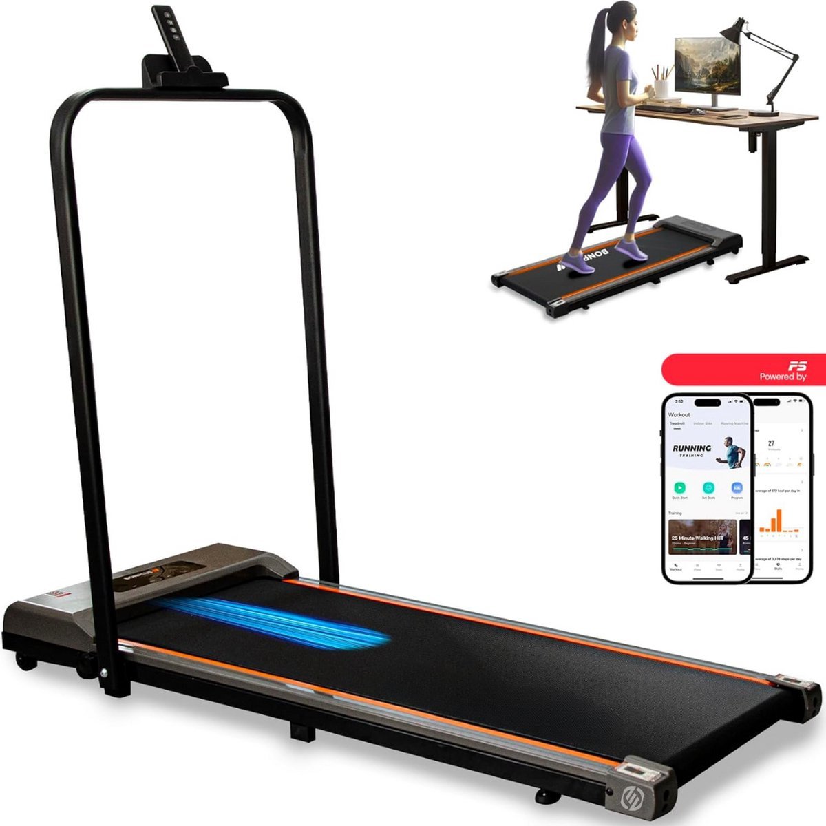 De loopband is ontworpen met een ultradun en volledig opvouwbaar ontwerp, zodat je hem eenvoudig kunt opbergen wanneer je klaar bent met trainen. Dit maakt het apparaat ideaal voor mensen met beperkte ruimte, omdat je de loopband gemakkelijk kunt inklappen en opbergen onder een bed of in een kast. Ook is hij dankzij zijn lichte gewicht en compacte formaat eenvoudig te verplaatsen.