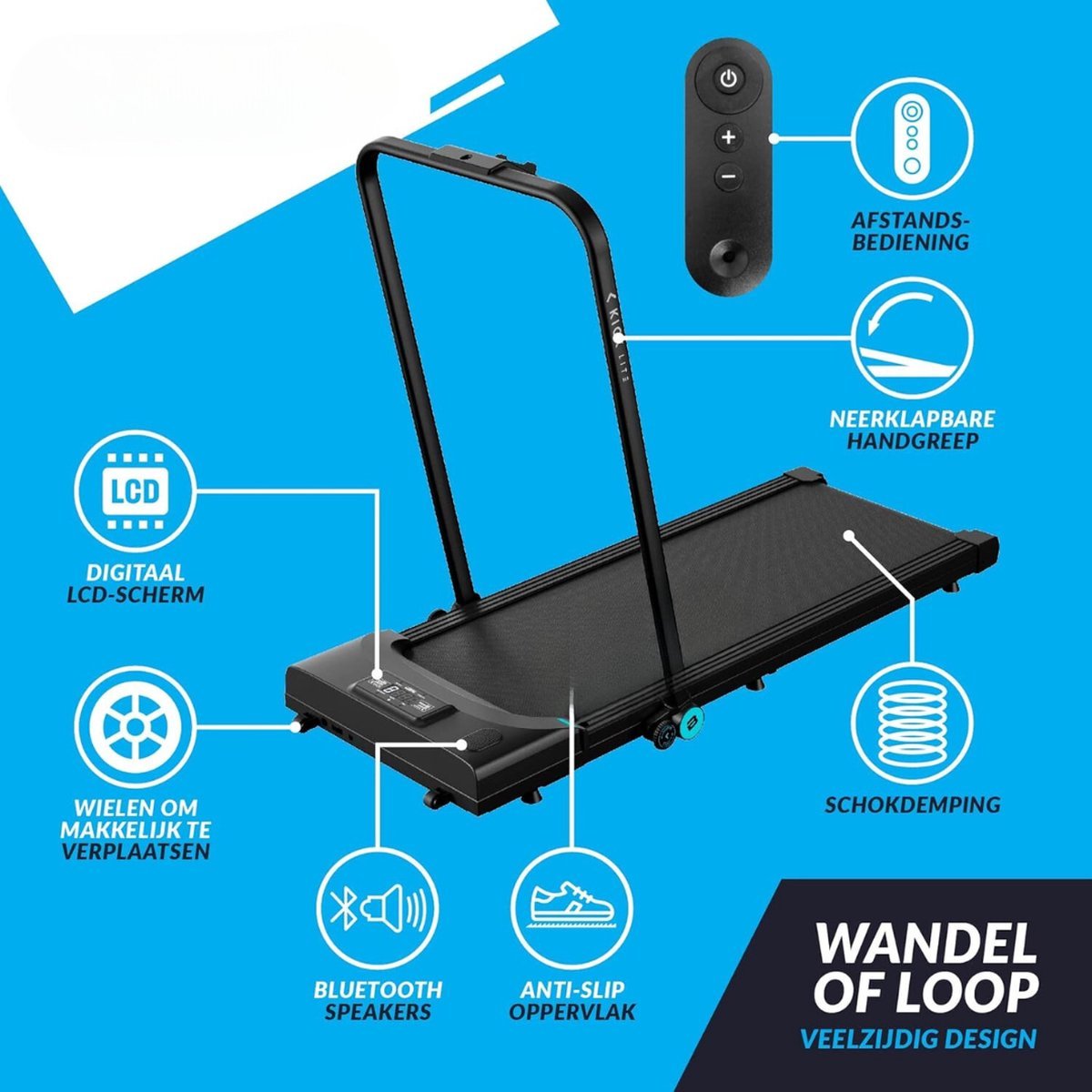 Veelzijdige snelheden: Pas de snelheid aan tot maximaal 8 km/u, perfect voor wandelen of lichte jogging.