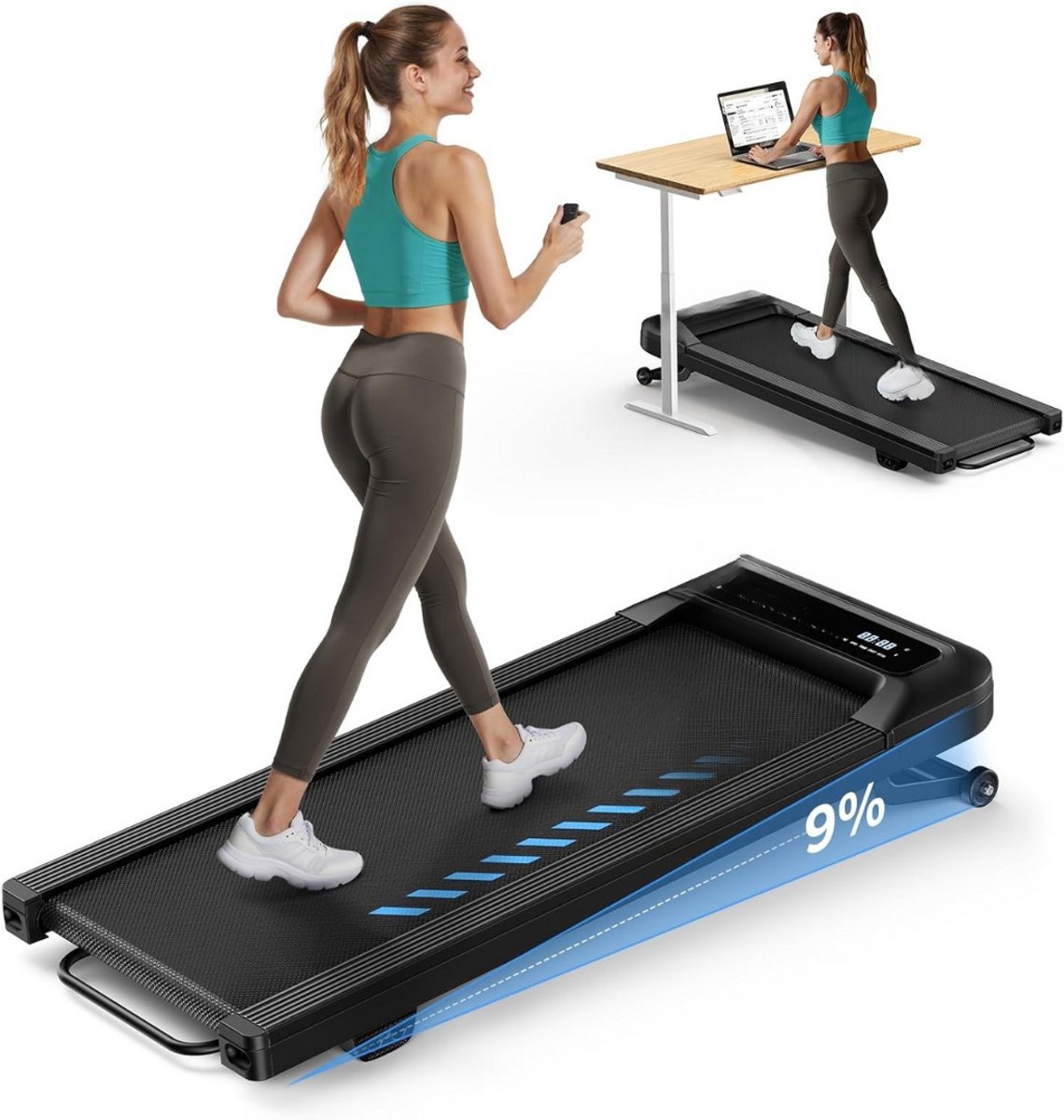 Deze opvouwbare loopband is direct klaar voor gebruik, want geen montage is vereist. Dankzij de transportwielen is hij eenvoudig te verplaatsen en op te bergen onder je bed, bank of bureau. Dit maakt hem ideaal voor kleine ruimtes.