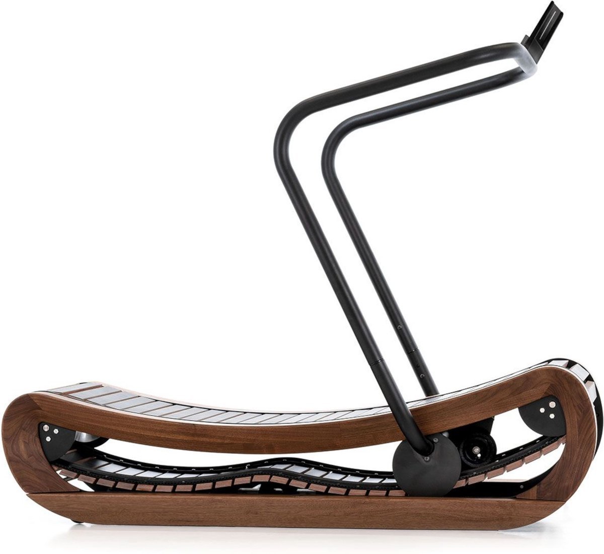 De NOHrD loopband is handgemaakt van walnoothout en wordt op bestelling geproduceerd.