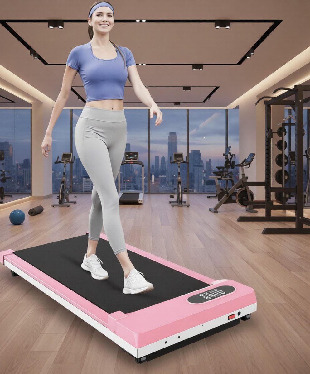 Loopband Walking Pad met Helling – Elektrische Onder Bureau Treadmill 1-8 km/u – Compact & Stil – 2,5 PK – LCD Display – Voor Thuis & Kantoor – Roze – Designbest (9508617357261)