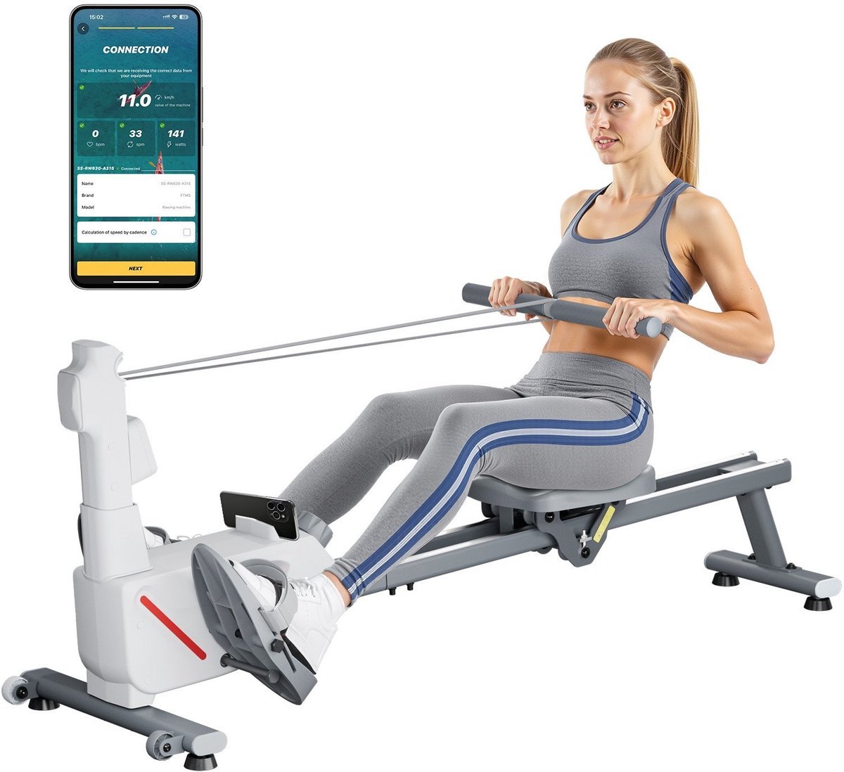 Roeimachine – Magnetische Roeitrainer – 16 Weerstandsniveaus – Opvouwbaar – Dubbele Glijrails – LCD-display – Bluetooth-app – Draagvermogen 158 kg (6152745420477)