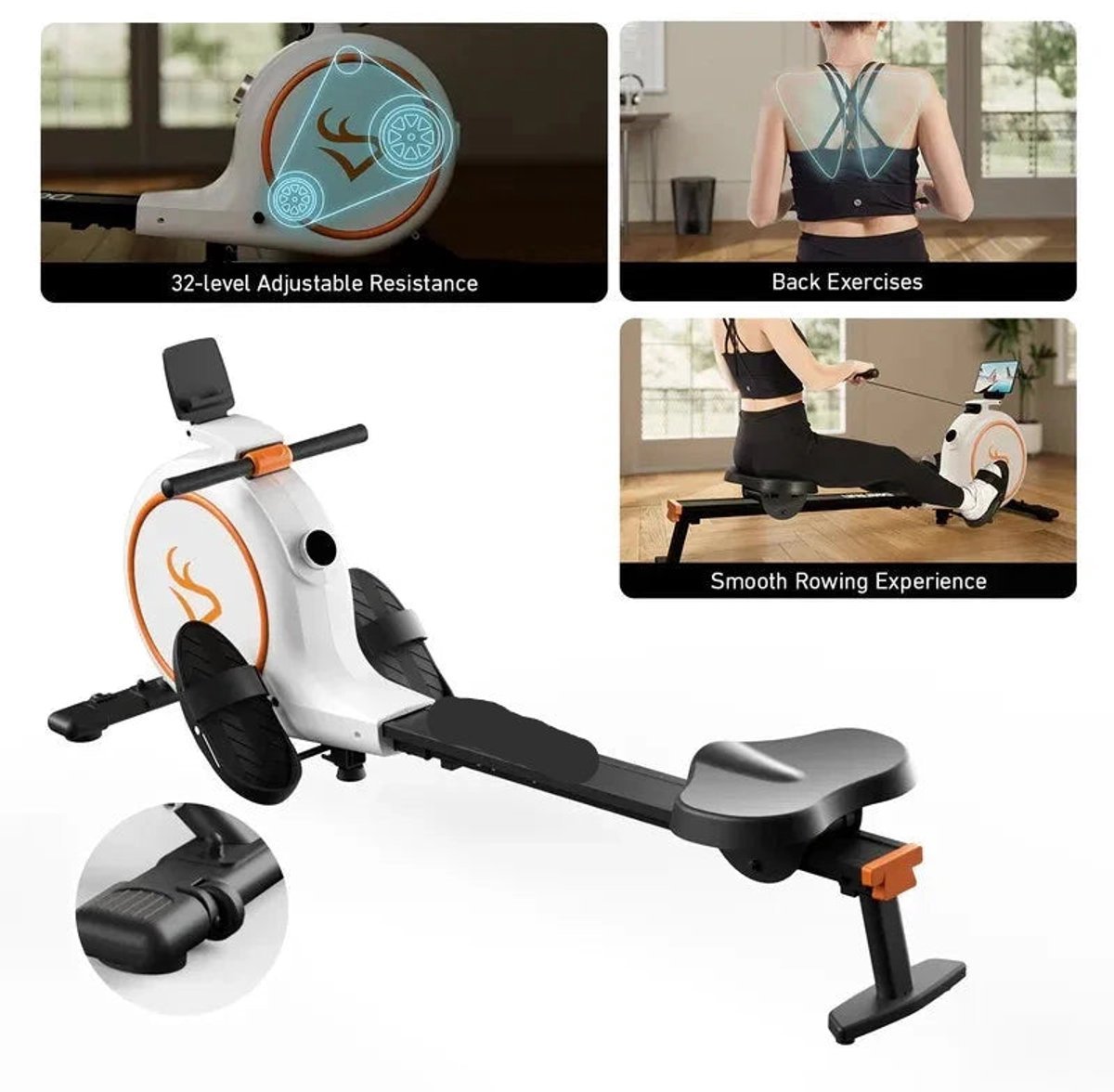 Roeimachine – Roeiapparaat – Magnetische Roeitrainer Fitness – 32 Weerstandsniveaus – LED Display – Bluetooth Smart Rower – Geluidsstil – 300LBS Draagvermogen – Wit (8721359078794)