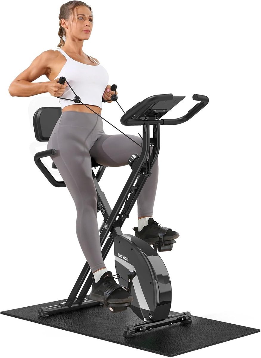 Verbeter je fitnessroutine met deze opvouwbare hometrainer perfect voor gebruikers die ruimte willen besparen. Hij wordt gedeeltelijk voorgemonteerd geleverd voor een eenvoudige installatie geschikt voor dagelijks gebruik. Het stevige X-frame ontwerp zorgt ervoor dat de hometrainer maar liefst 135 cm² vloeroppervlakte in beslag neemt wanneer hij is opgevouwen. Geniet van een fluisterstil en soepele training met de magnetische weerstand ideaal om ongestoord te sporten terwijl je tv kijkt of leest. Met 16 niveaus van aanpasbare weerstand en weerstandsbanden kun je jouw training volledig personaliseren en een full-body workout ervaren. De comfortabele gewatteerde zitting en rugleuning bieden optimale ondersteuning voor een juiste houding waardoor deze hometrainer geschikt is voor zowel beginners als ervaren sporters. (EAN: 6152149940977)