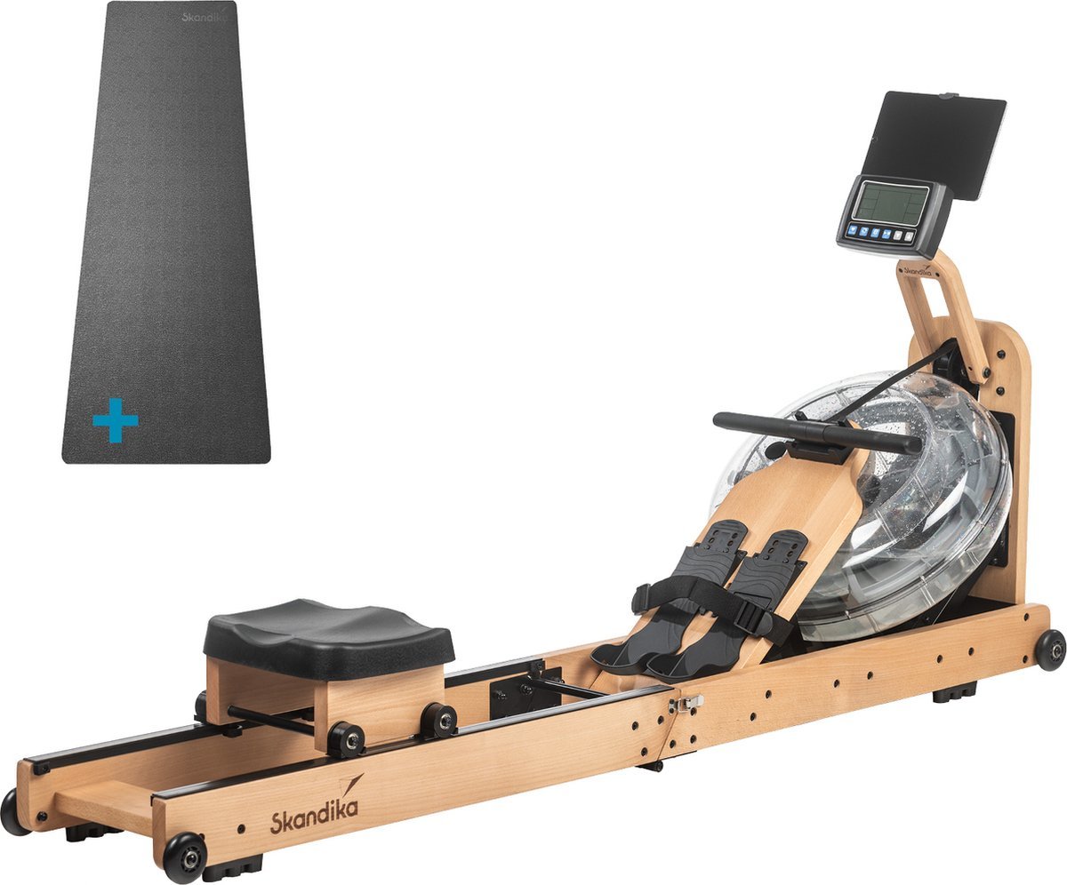 Skandika Nytta Water Roeimachine SET – Roeitrainers – Houten roeimachine met mat – Inklapbare roeiapparaat – 45° tank – Roeitrainer fitness voor thuis, waterweerstand, opvouwbaar – Kinomap App Compatible – Max. Gebruikersgewicht 150 kg. – beukenhout (4262393517091)