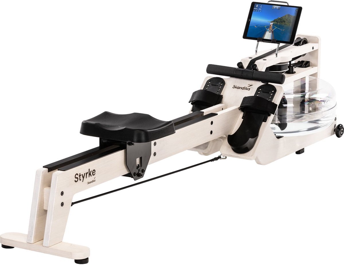 Als echte natuurjongen geeft Styrke zijn omgeving een vleugje originaliteit. Gemaakt van Duits essenhout betovert ons sieraad met zijn natuurlijke charme. Met de hand geolied, komt de nerf van het hout naar voren en samen met het hoogwaardige met laser gegraveerde Skandika-sieraad ontstaat een prachtig uniek sieraad. Onze ontwerpers hebben een jaar lang samen met externe specialisten en de ontwerper Tukiendorf gewerkt aan de verfijning van Styrke. Met zijn slanke ontwerp, afgeronde hoeken en vloeiende lijnen geïnspireerd door roeien, maakt hij een duidelijk statement: deze premium roeimachine is een werkplek en designobject in één. En ondanks zijn stevige constructie hoeft hij in geen enkele woonkamer te ontbreken. Maar het zou kunnen · Styrke kan worden opgezet en weggerold met een handomdraai.
