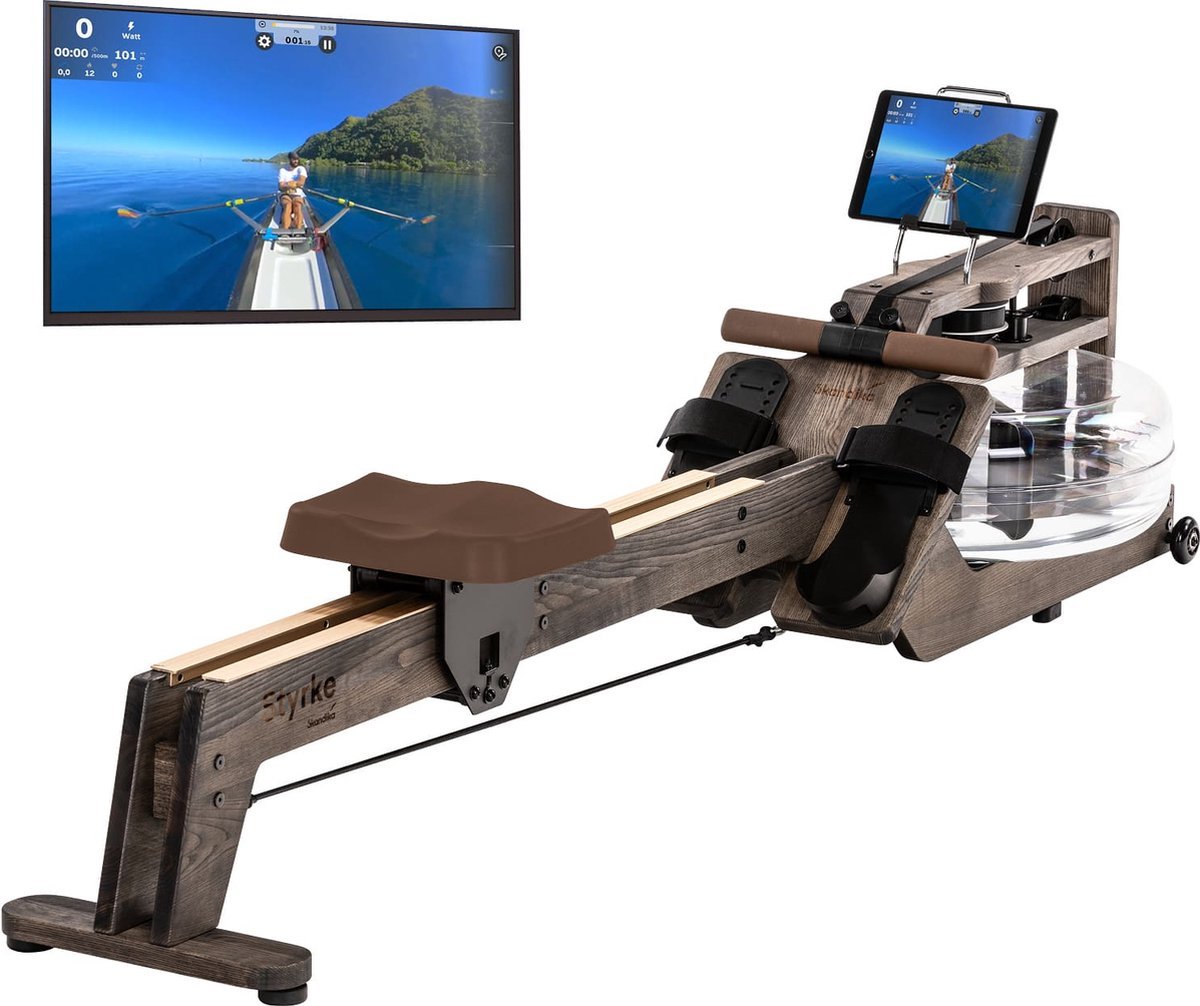 Skandika waterroeitrainer Styrke Premium – Made in Germany, roeitrainer met waterweerstand van hout, Kinomap app-functie, roeimachine voor thuis, massief essenhout uit Duitsland, natuurlijk roeien, tot 180 kg (4262393512744)