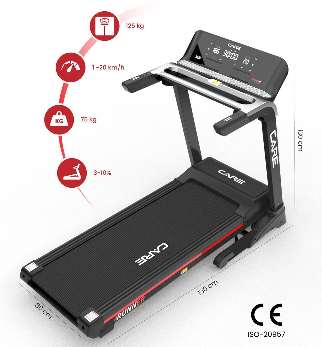 CARE RUNNER – Connected loopband – Maximale snelheid 20 km/u – 50 programma’s – Opvouwbaar – Gemotoriseerde helling tot 10% – Intensief thuisgebruik (3347260507540)